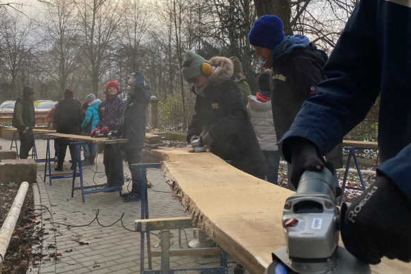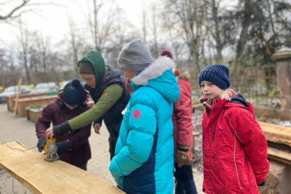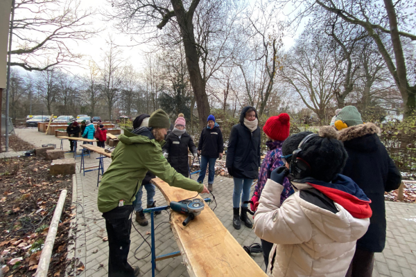 Angestoßen wurde dieses Projekt, da sich die Schule für die bessere Nutzung des Schulgartens Sitzgelegenheiten und einen großen Tisch wünschte. Durchgeführt wurde das Projekt mit der Mädchen* AG der 5. Klassen. Zusätzlich zu den Bauarbeiten war es auch Ziel des Projekts, dass sich die Mitglieder der Mädchen*-AG mit dem „Mädchen*-Sein“ auseinandersetzen. Mit Hilfe verschiedener Methoden wurde die konstruierte Zweigeschlechtlichkeit in unserer Gesellschaft thematisiert. Vor allem Weiblichkeitsanforderungen an die Mädchen*, stereotype Geschlechtermerkmale sowie Charakterzuschreibungen in Rollenklischees wurden reflektiert.