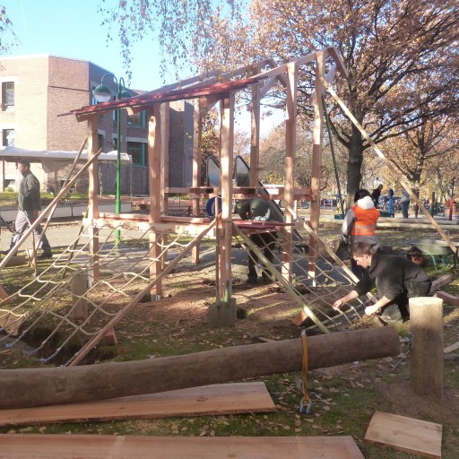 Dem fünftägigen Bau des Spielplatzes ging eine mehrmonatige Planungsphase voraus. Aus den Ideen aller Beteiligten und den Wünschen der Benefit-Organisation wurden Skizzen und Modelle entwickelt und immer wieder mit den Stakeholdern abgeglichen. Die Umsetzung wurde mit Unterstützung von ALEA-Mitarbeitenden von den Teilnehmenden selbst in die Hand genommen. So entstand binnen fünf Tagen neuer Spielplatz für die Kinder.